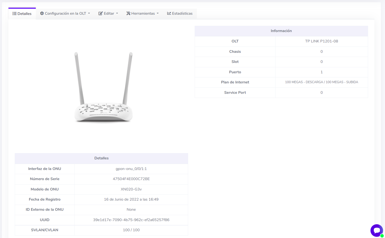 1Para ver los dispositivos que aún no han sido autorizados, debemos dirigirnos a la sección ONU > Sin Autorizar y seleccionar alguna ONU disponible.