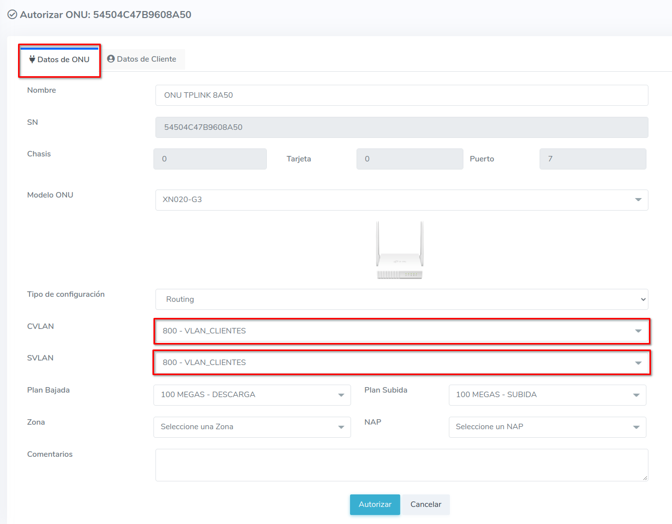 Autorizar ONU TP-Link Serie DS-P7001