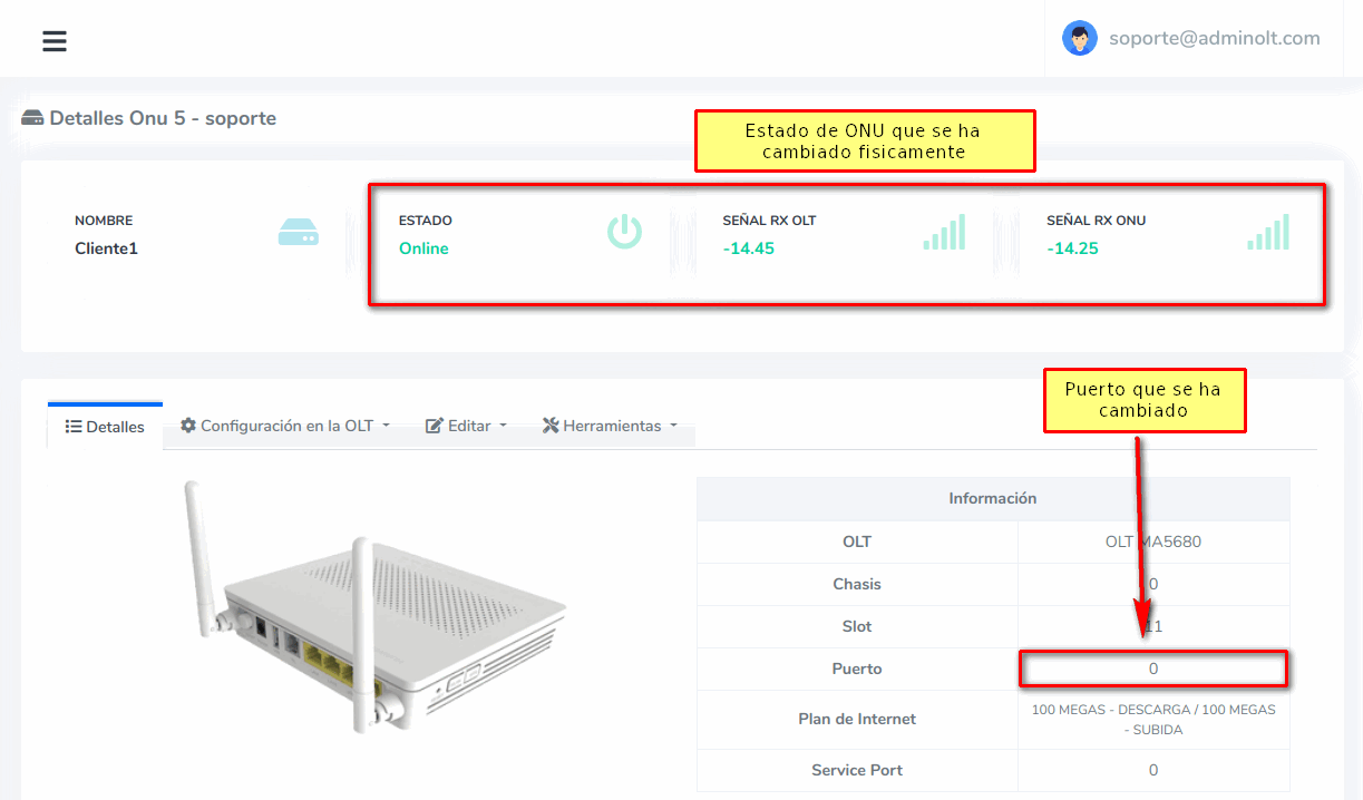 7 Cambiar ONU de Puerto fisicamente y verificar estado de la ONU