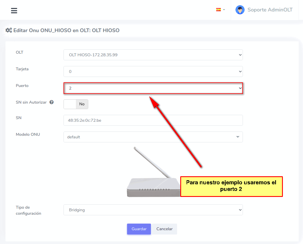 2Seleccione el puerto al que desea cambiar la ONU
