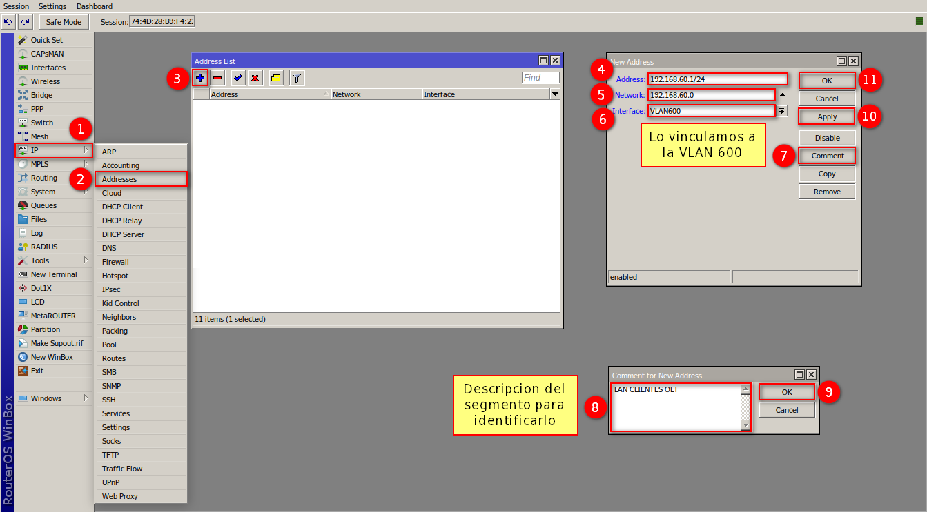 Para poder brindar el servicio debemos crear una VLAN para los clientes, para este ejemplo se creará la VLAN 600, con el Segmento de Red 192.168.60.0/24