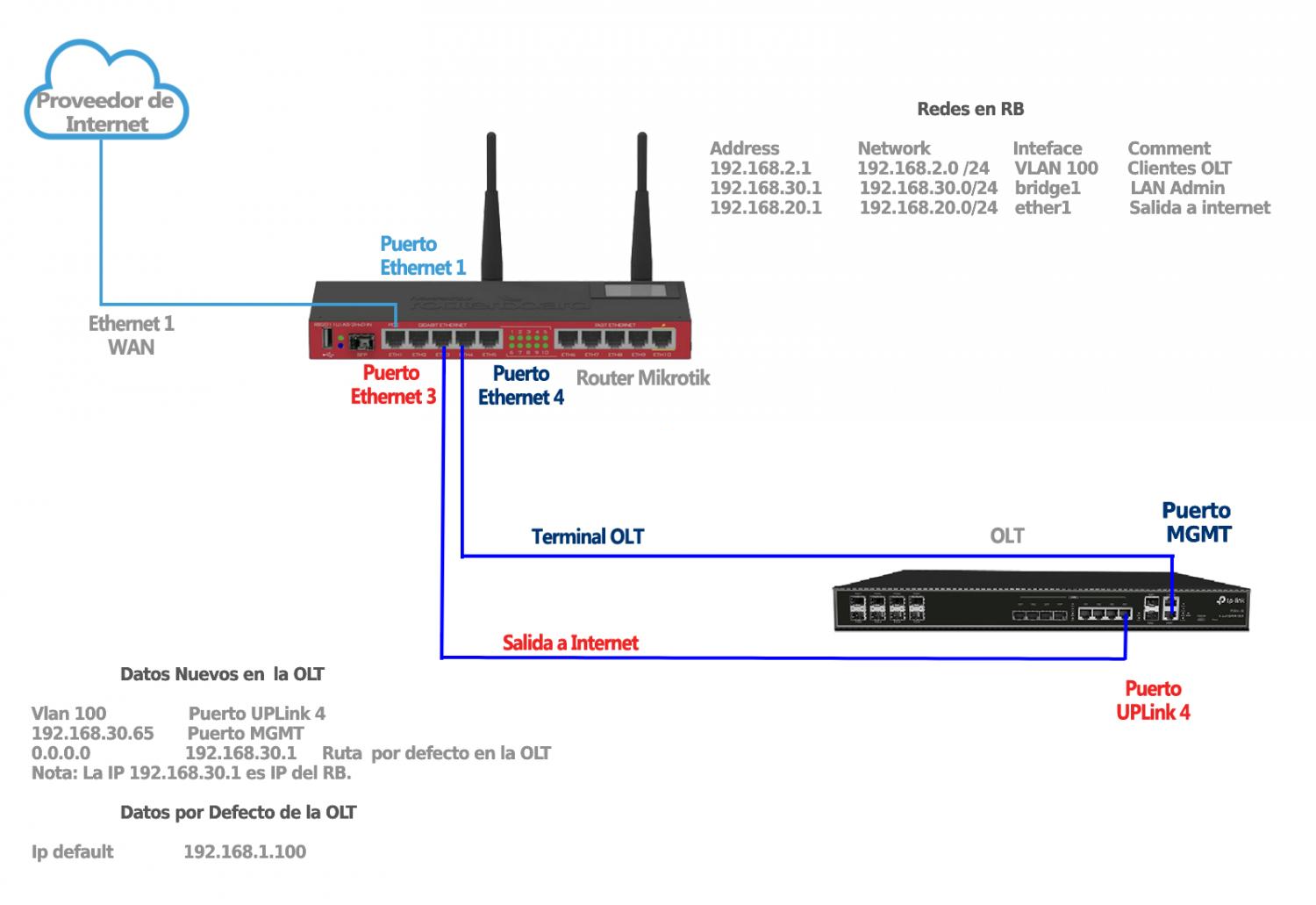 2Direccionamiento para la red default de Administración. Esta es la red que viene en las OLT TP-LINK nuevas o que se restablecieron a los valores por defecto. Esta IP solamente nos servirá para conectarnos por primera vez al equipo, ya que posteriormente en la configuración de la OLT vamos a cambiarla por nuestra red de administración.