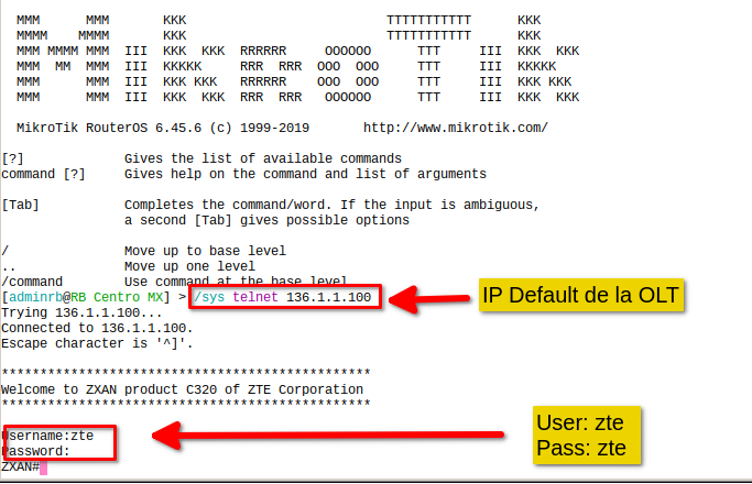- 1.- Agregamos el segmento default de la OLT: 136.1.1.254/24 para que el Mikrotik tenga comunicación con la OLT