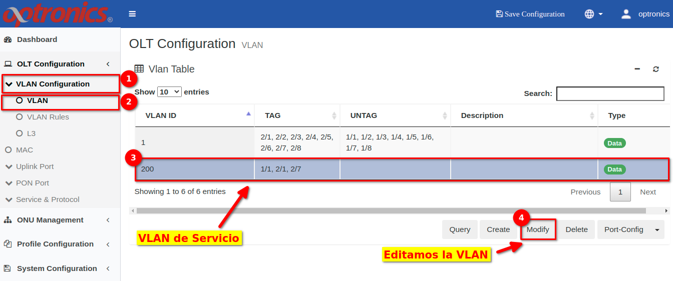 4 Taggear VLAN de Servicio a Puerto PON