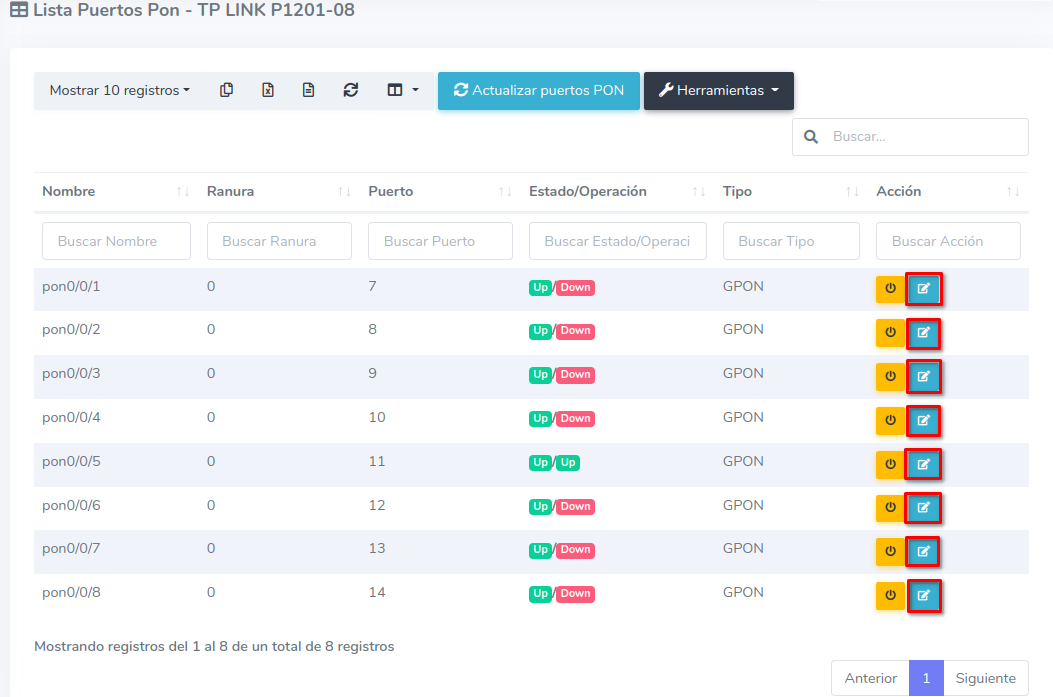 1 Ir a Lista de Puertos PON de nuestra OLT