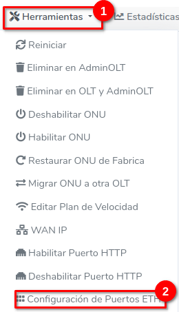 2 Ir a la sección Herramientas > Configuración de puertos ETH.