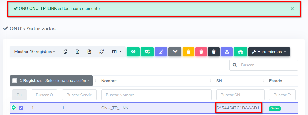 Editar ONU TP-Llink por Numero de Serie (SN)