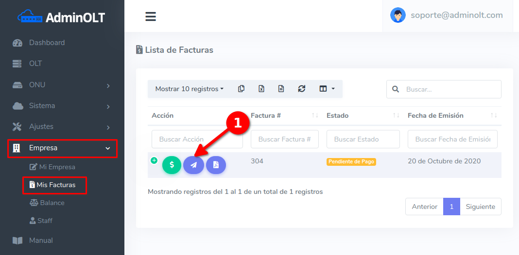 Detalles Sobre Facturas: El precio de las facturas es dependiendo del precio del plan con la que se encuentre la OLT del cliente y la cantidad de OLT's registradas.